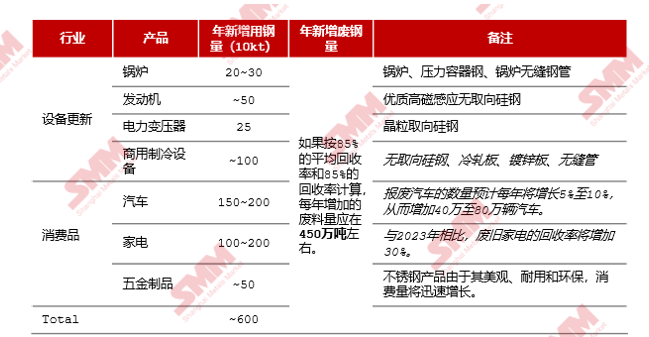 ►一季度国务院发布《大规模设备更新和消费品以旧换新的行动计划》此政策的实施,废料供应预计将增加约450万吨