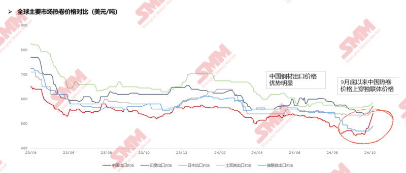 以热卷为例,2024年预计中国热卷商品材产量1.9亿吨,内需缺口3000万吨